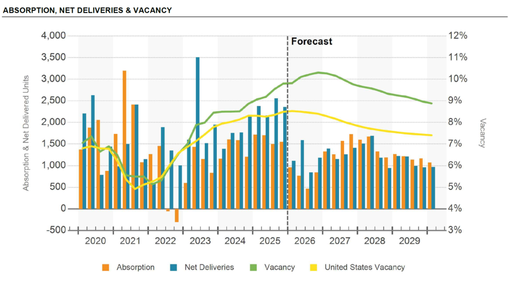 This last quarter of 2025 tells a similar story to Q3. Columbus is navigating a record-shattering wave of new supply that has pushed vacancy rates to a two-decade high. Even with demand significantly outperforming historical norms, the sheer volume of units hitting the market has effectively flattened rent growth across the region. As we look toward 2026, the sharp pullback in the construction pipeline suggests a period of stabilization is approaching, but not until the end of the year. For now, operators are competing by offering concessions and lowering rents to maintain occupancy.