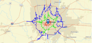 Target 10–15 minute drive areas for housing that bridges the gap. These regions show decreasing rentership (58% at 15 min) and lower median home values (~$285K), creating potential entry points for build-to-rent.